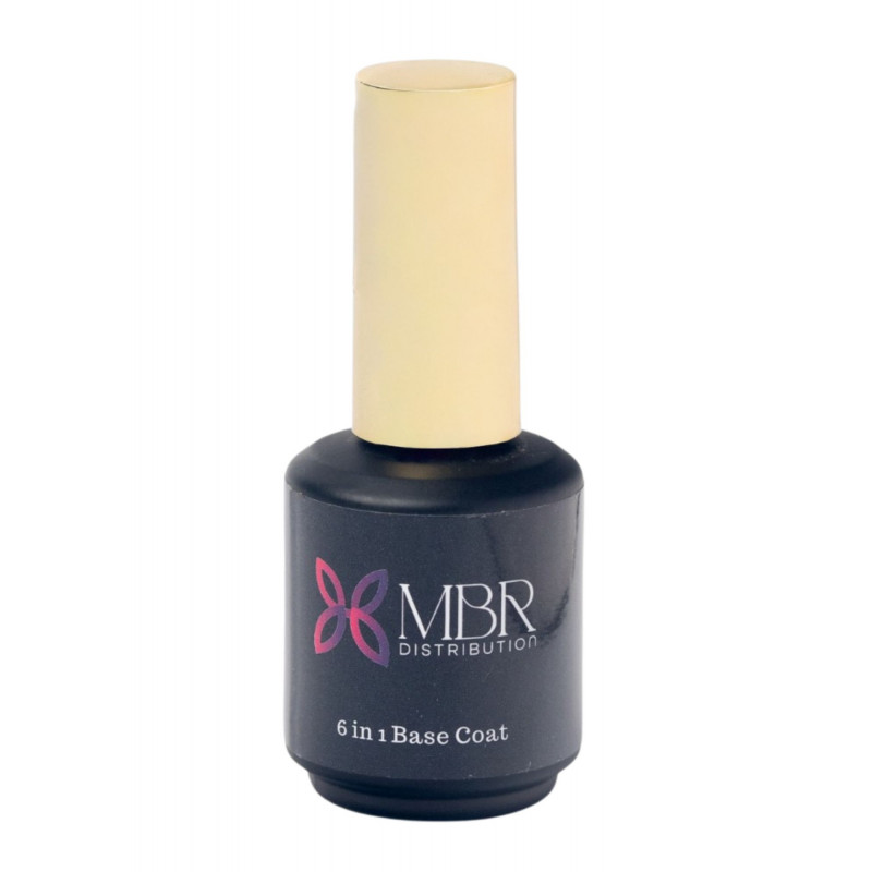 Application : Préparer l'ongle : désinfection, limage, cuticules, dépoussiérage. Appliquer une fine couche de Base Coat 6 en 1. Catalyser. Appliquer la couleur ou poursuivre avec une construction/renfort.